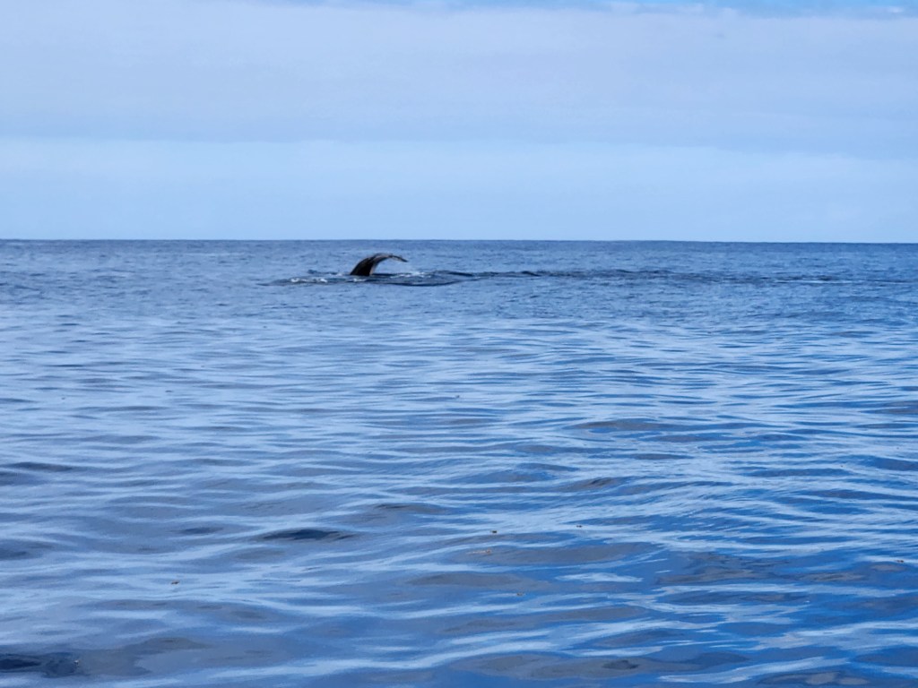 The same cannot be said of the marine environment, which has a large and very diverse quantity of aquatic life. On our first snorkel, we had no sooner put our faces in the water than we were confronted with a ray casually sauntering into the shallows and Stuart was accosted by a large Trigger fish that just seemed to take an instant dislike to him, or perhaps his Speedos because Fran was left alone. We chose Tahiti at this time of year because firstly it’s the dry season (which seems to mean it only rains every other day) and secondly because the humpback whales are in town. The Polynesians are really protective of the marine environment but do allow you to swim with the whales under certain protocols which are closely monitored by waterborne police patrols. So, we booked a half day excursion to find and hopefully get into the water with these magnificent animals. The whales have to be receptive of the boat and stop swimmimg before you can get into the water and whilst we got close a couple of times, we stayed dry. However, the experience was incredible, with us seeing large numbers of whales and one even surfacing right next to us before immediately diving under the boat. The most incredible thing was being over the top of a mummy, daddy and their baby and being able to hear them talking to each other. The guides said it was quite unusual to be able to hear them from the boat and that we were very lucky. They then placed a hydrophone in the water and the noise of the whale song was deafening. This was such an amazing trip that when we go back to the house we immediately booked another.