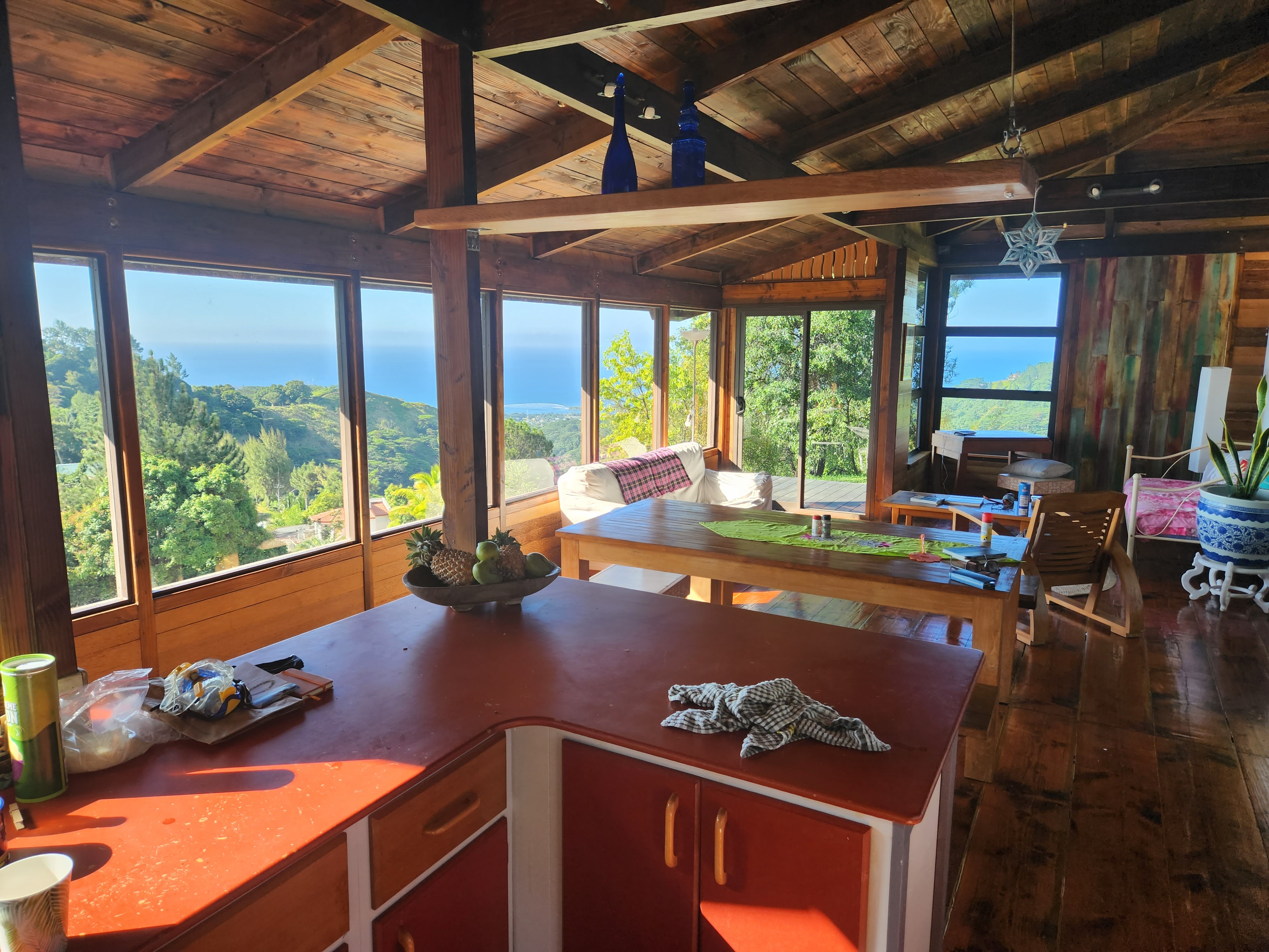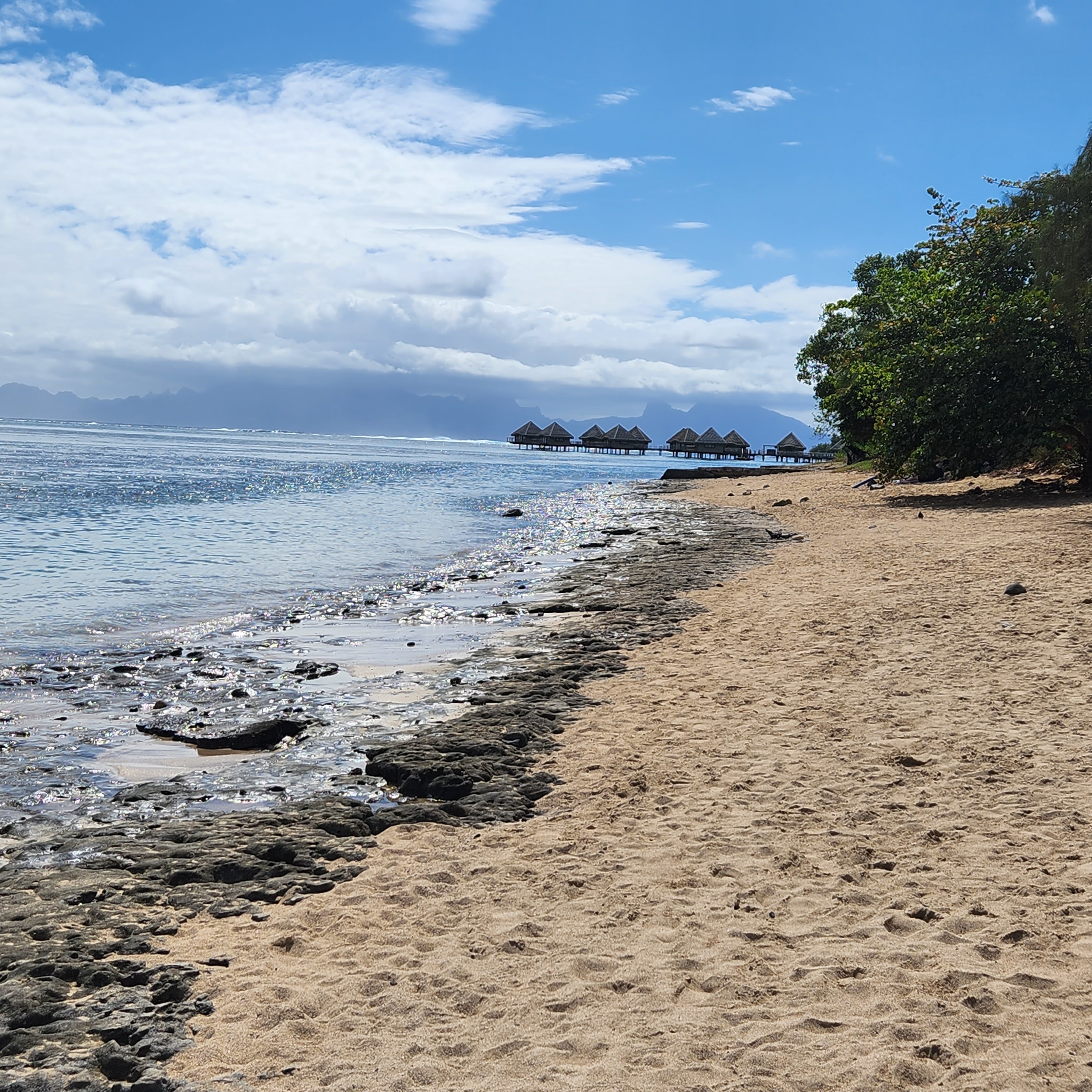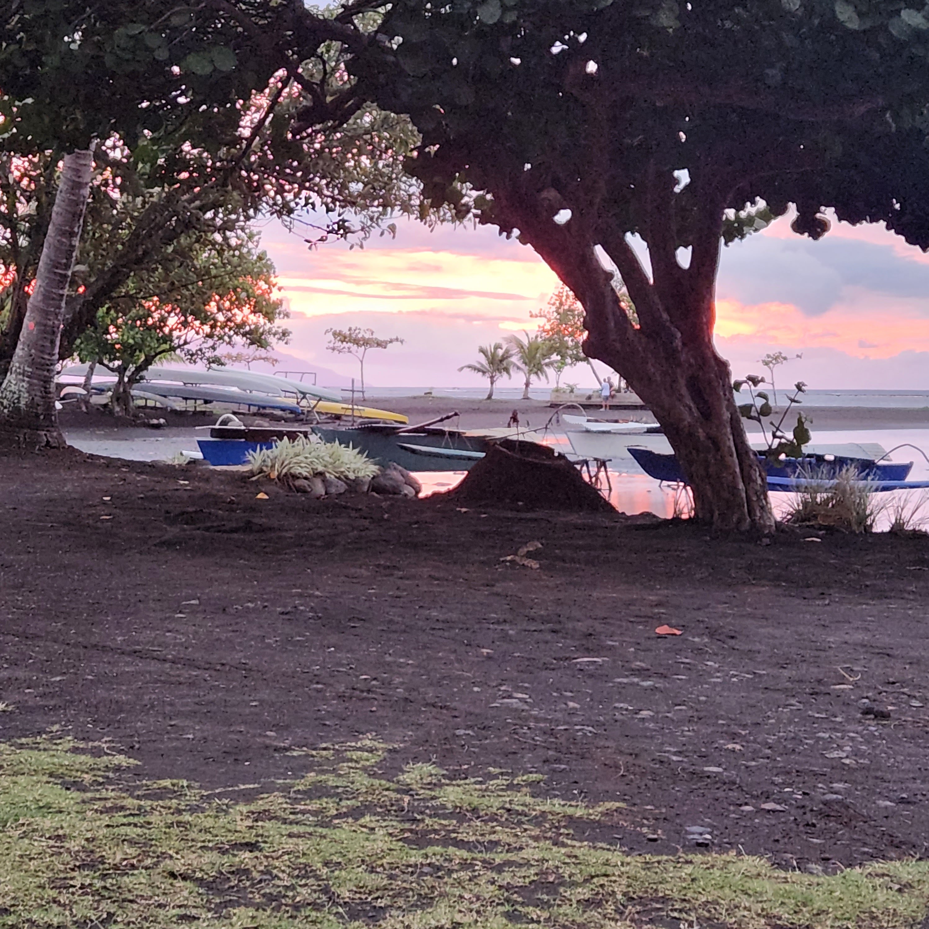 So, one of the things that we love about Tahiti is how very green it is; it’s also what we love about the UK. It has every green that Mother Nature’s palette can offer. Unfortunately, this week we truly discovered the common ingredient behind these two verdant landscapes………rain, rain and yet more rain. We deliberately chose this time of year because it’s meant to be hot and dry. Now either we are incredibly unlucky or the local meteorologists are on a bung from the Tahitian tourist board. Either way we haven’t had any rain-clear days and some have been just downright miserable. Of course a bit of rain isn’t going to stop us and we have still managed to get some snorkeling in, with a midweek trip to a recommended spot, Toaroto beach. The snorkeling was great as there was an incredibly strong current flowing parallel to the beach, which meant you could get in at the top and just float all the way along without effort. You did have to remember to turn into the shore in time to avoid being pushed out of the reef and into the arms of larger prey fish of course. This spot was also quite unusual and in some ways quite sad. It appears that it was once a posh hotel, with the customary over the water bungalows, which has since closed. It looked recently abandoned, so we are guessing a victim of the pandemic. Perversely though we could bob about by the bungalows and pretend we were on honeymoon and paying $2000 a night for the pleasure. The idea of sneaking into one of the huts for a night’s stay was quickly squashed however when the largest security guard in the Pacific made an appearance and we were forced to scadadal.