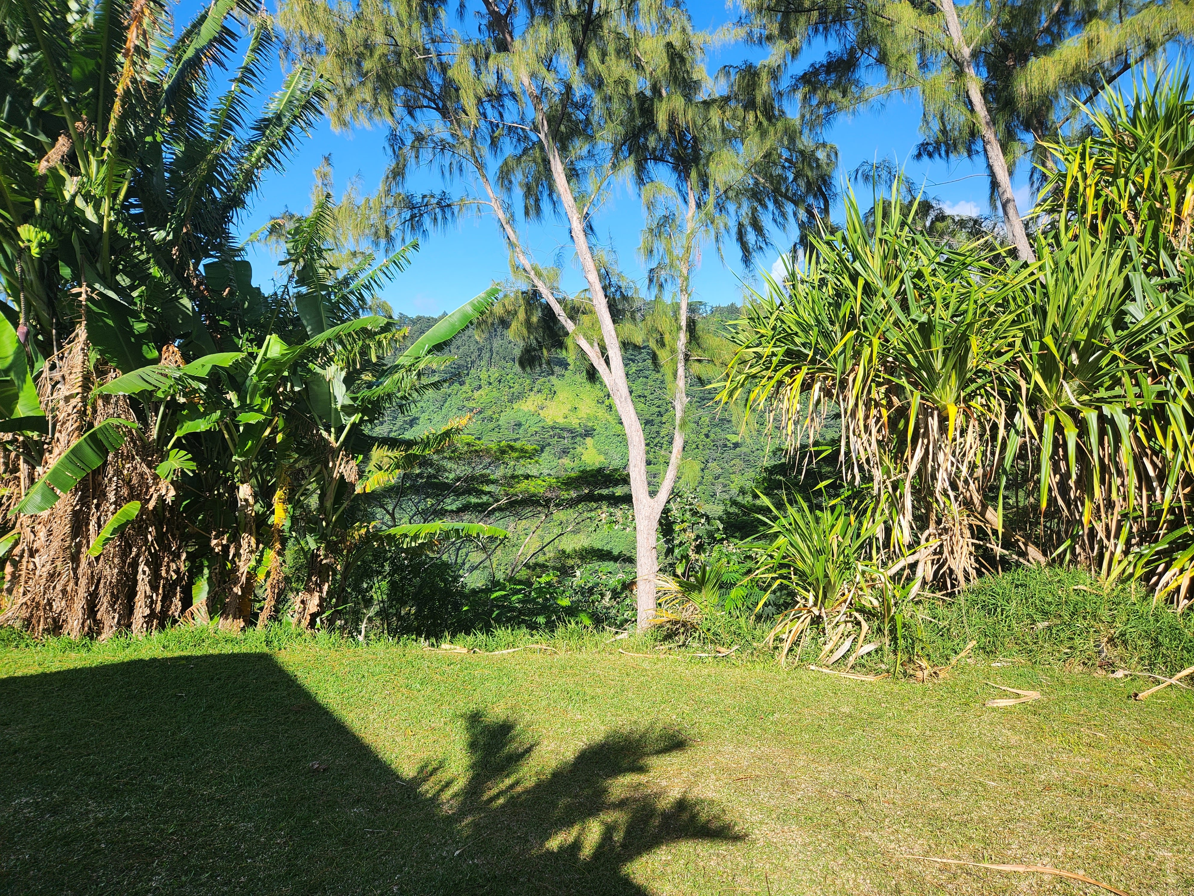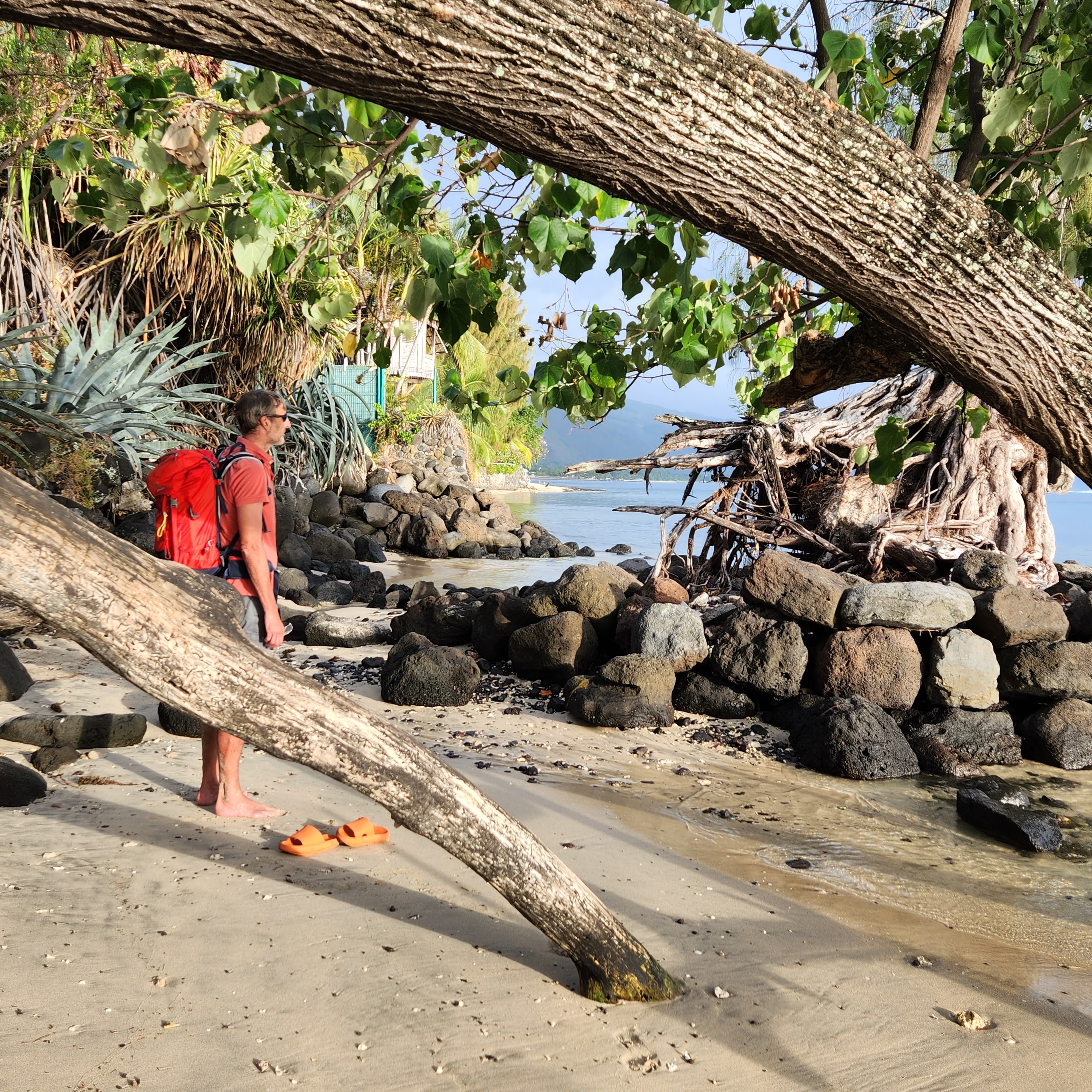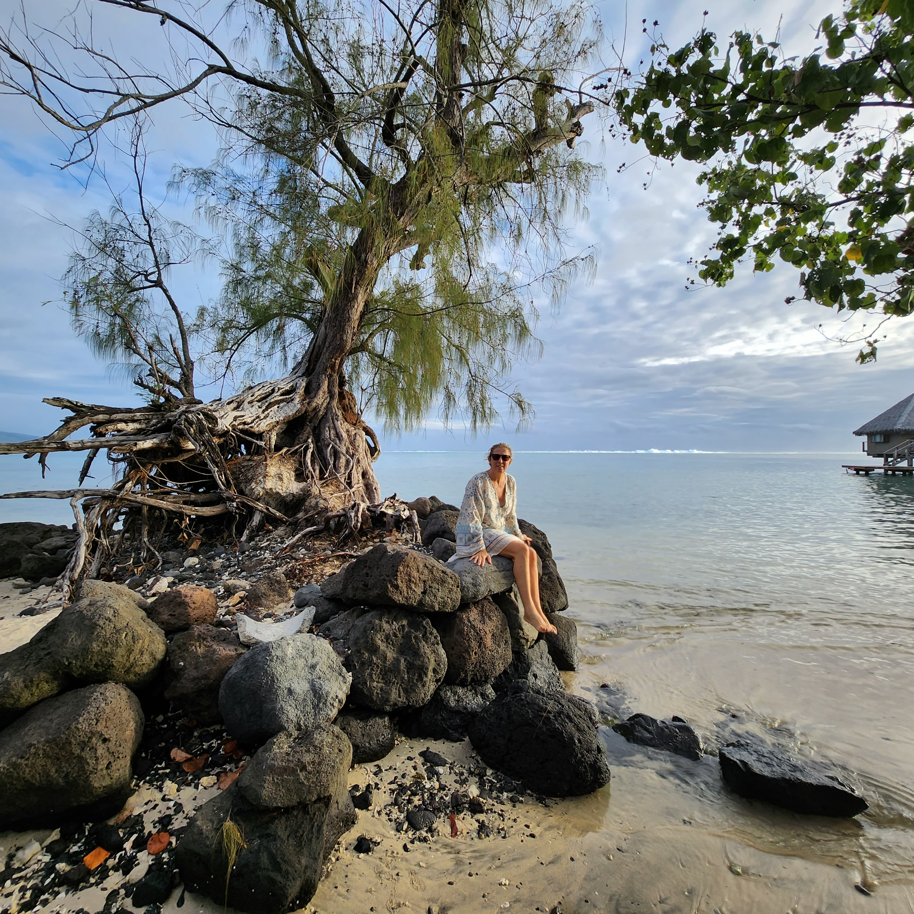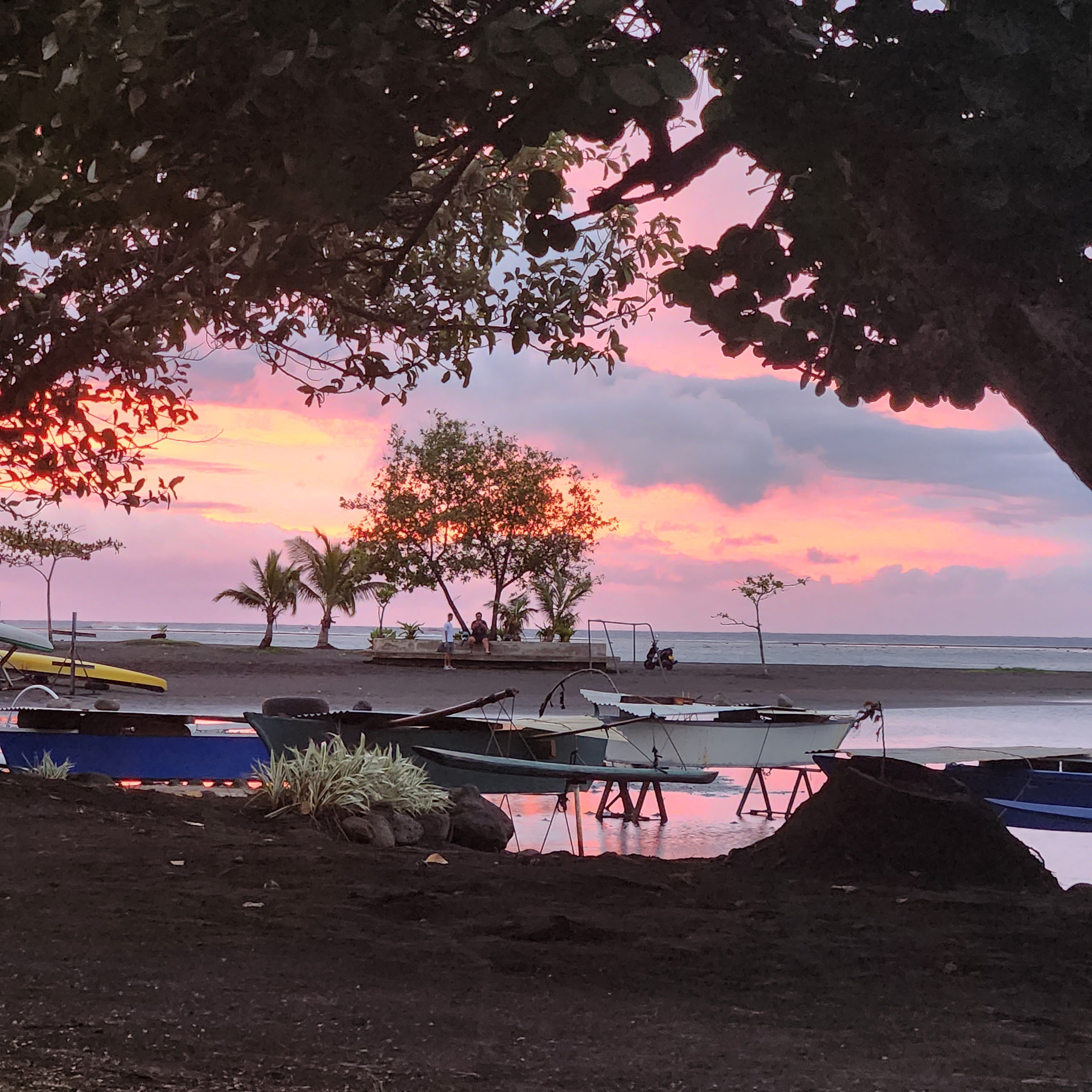 So, one of the things that we love about Tahiti is how very green it is; it’s also what we love about the UK. It has every green that Mother Nature’s palette can offer. Unfortunately, this week we truly discovered the common ingredient behind these two verdant landscapes………rain, rain and yet more rain. We deliberately chose this time of year because it’s meant to be hot and dry. Now either we are incredibly unlucky or the local meteorologists are on a bung from the Tahitian tourist board. Either way we haven’t had any rain-clear days and some have been just downright miserable. Of course a bit of rain isn’t going to stop us and we have still managed to get some snorkeling in, with a midweek trip to a recommended spot, Toaroto beach. The snorkeling was great as there was an incredibly strong current flowing parallel to the beach, which meant you could get in at the top and just float all the way along without effort. You did have to remember to turn into the shore in time to avoid being pushed out of the reef and into the arms of larger prey fish of course. This spot was also quite unusual and in some ways quite sad. It appears that it was once a posh hotel, with the customary over the water bungalows, which has since closed. It looked recently abandoned, so we are guessing a victim of the pandemic. Perversely though we could bob about by the bungalows and pretend we were on honeymoon and paying $2000 a night for the pleasure. The idea of sneaking into one of the huts for a night’s stay was quickly squashed however when the largest security guard in the Pacific made an appearance and we were forced to scadadal.