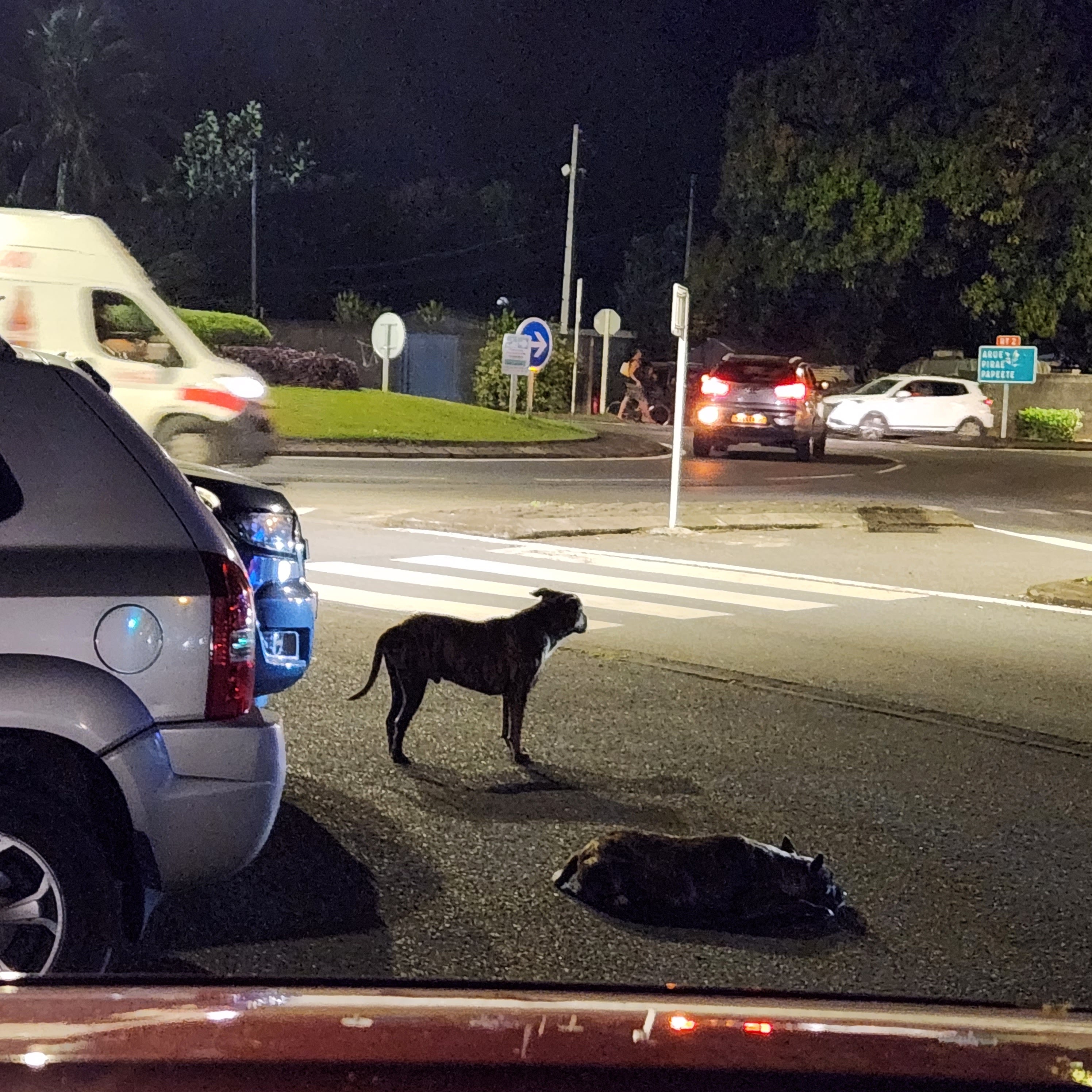 Security seems to be a bit of thing in Tahiti and behind the warm welcome and beautiful smiles we have suspicion all isn’t quite what it seems. One of the things that we will remember about this island is the dogs. We are not just talking poodles here but breeds that could really do some damage and almost everyone seems to have one. Most houses have high electrically operated gates with equally high fences and many of the dogs are kept behind them. However, there many more are just wandering around and on occasions meeting up with some mates to form packs of 3 or 4. Now in reality whilst many of these dogs look aggressive they seem to be quite well socialised but why the need? We took ourselves down the cheaper end of our nearest town and even they were taking huge security precautions to ensure their properties are protected against intruders with some even having razor wire on top of their fences. It’s really odd because if you look online then Tahiti is one of the safest places to visit in the world…..but then September is also hot and dry !!!!!