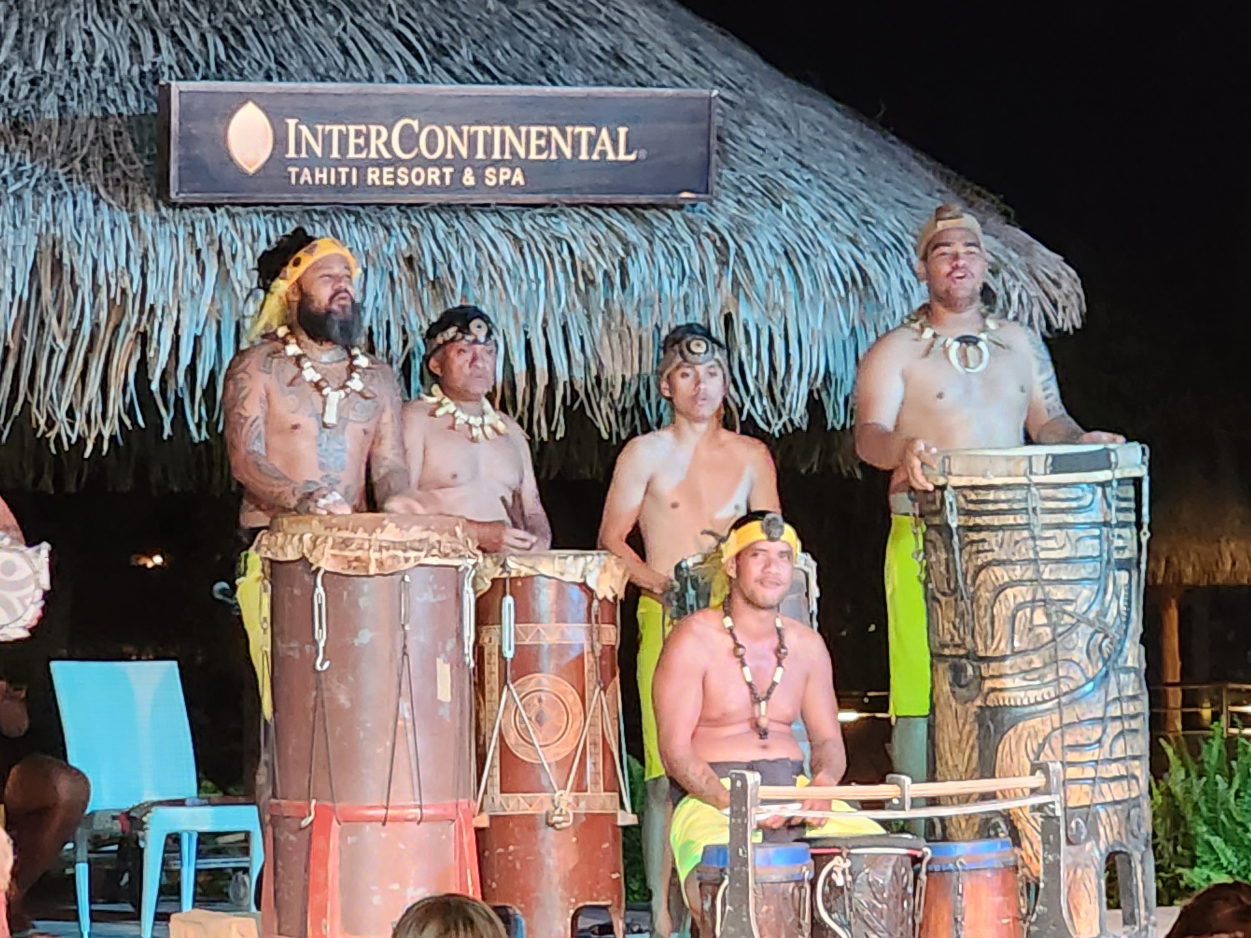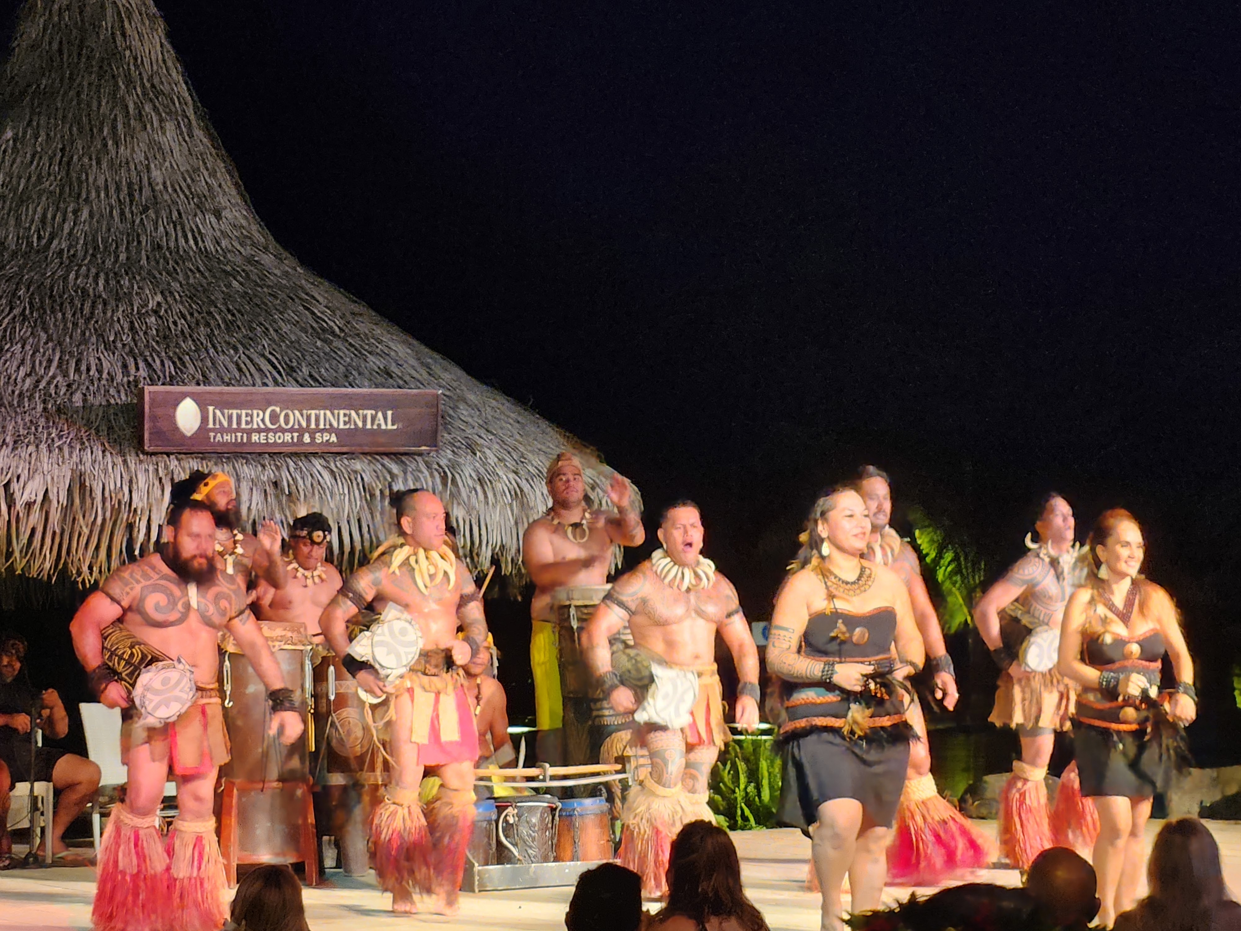 Because Tahiti is essentially part of France, there are no restrictions on French people coming and working, as demonstrated by our fisherman friend Patrice. However, from our admittedly limited exposure to the islands it appears that the result is that the native Polynesian’s and their culture are rapidly disappearing. This was no more apparent than when we tried to find some “traditional” Polynesian music and dancing to watch, resorting to the Intercontinental Hotel complex for “Te U’I Tapairu” dinner show. Despite the fact that we felt more like we were on a cruise ship than deeply immersed in Tahitian culture, it was a fun night with the highlight being an invasion of flying ants looking for a new home. Whilst Fran was uncharacteristically reluctant to get on stage and learn the dance moves when volunteers were requested, she did make friends with a huge Tahitian that looked liked he’d just returned from dispatching Captain Cook.