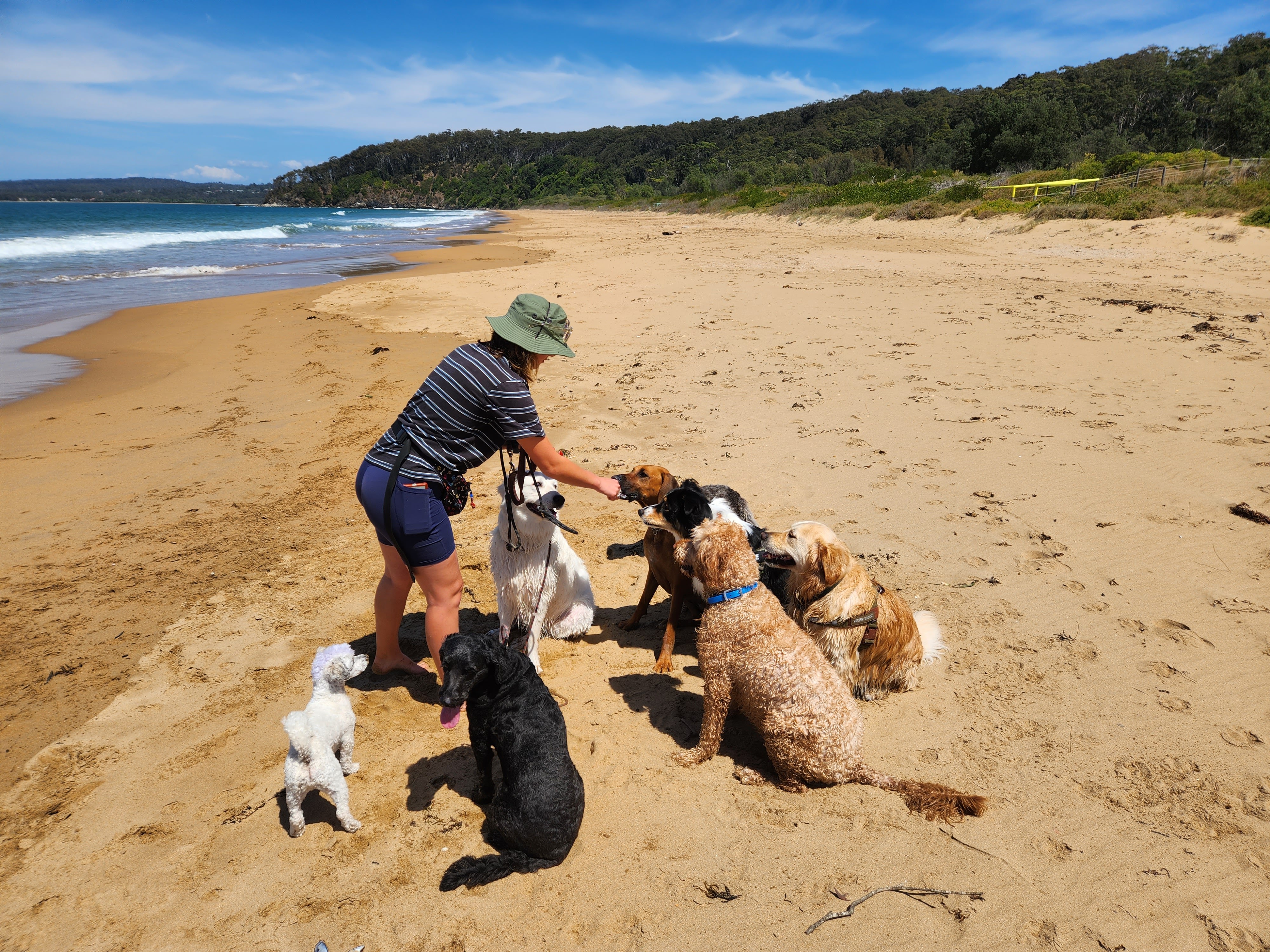 Lottie has a dog walking business, so we have spent most of the time walking the beaches with her and her dogs. The beaches are wide and long with pristine white sand that squeaks as you walk across it…..and totally devoid of other human life. With only 25million people and being 32 times larger than the UK, there’s a lot of space here. Despite the sharks (the proper jaws kind) and jellyfish, we have endeavored to go into the sea but the water is cold being as they are not yet into the summer. The marine life is as abundant as that on the land and this was no more apparent than when we took a trip to Narooma. Just walking along the shoreline path we saw metre wide stingrays and particularly playful seals just metres from us.
