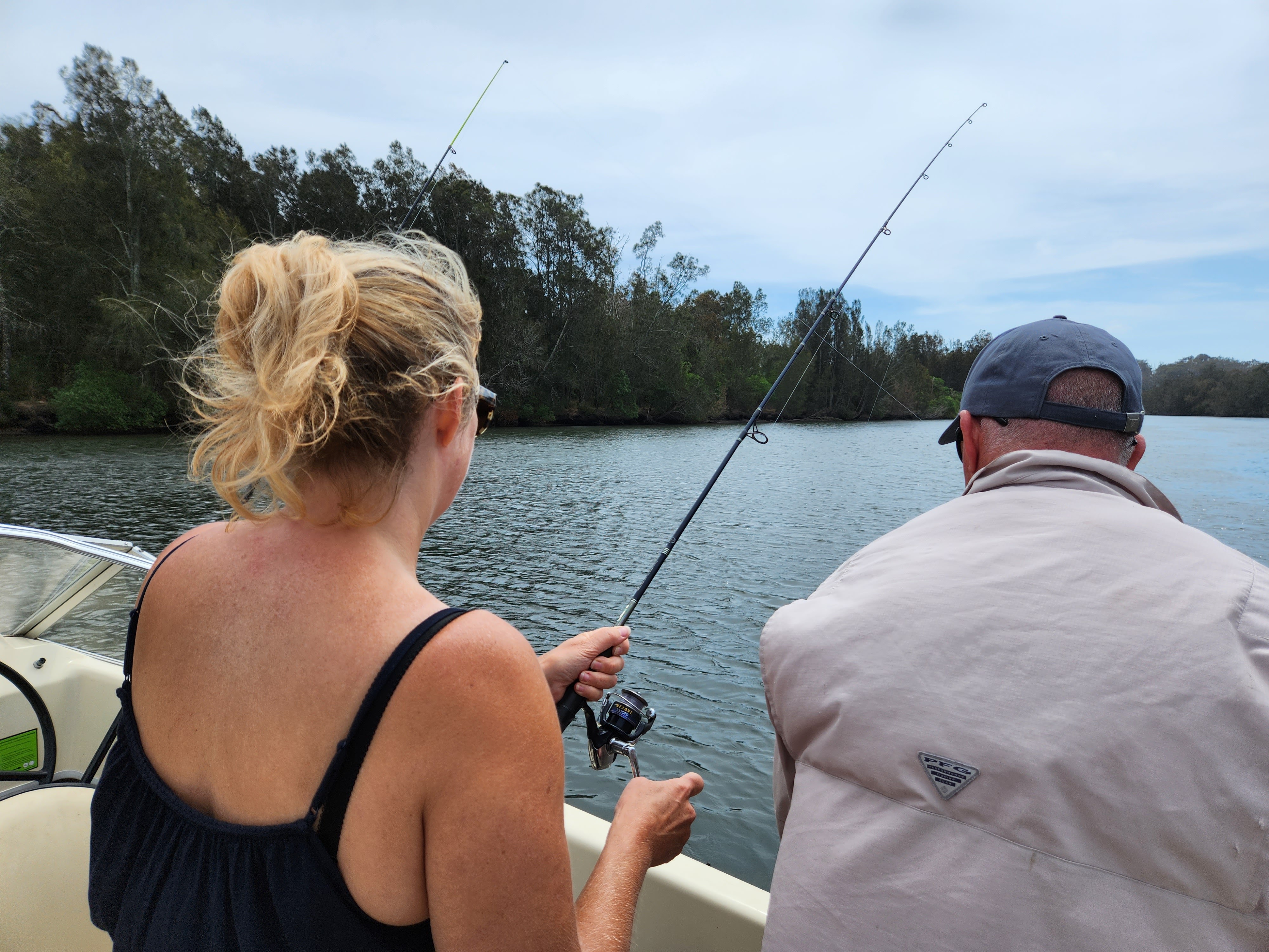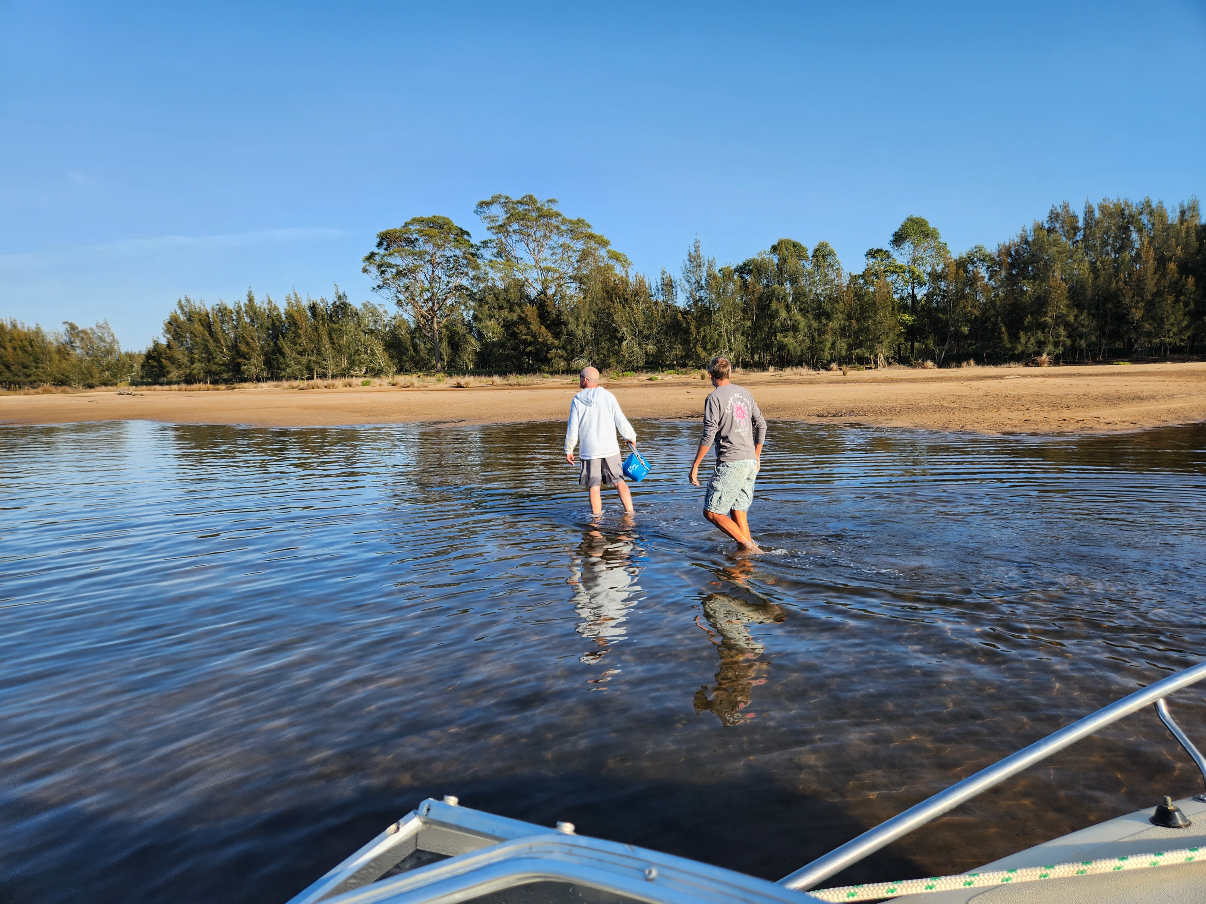 So I can sense the anticipation for those who read last week’s blog in knowing how we got on with yet another fishing trip. Well, by way of a spoiler, we now know how Jesus fed the 5000 with just loaves and fish…. he had Cameron and his boat. We departed the dock at 07:30 to firstly catch the bait. This is a strange concept as we thought you just bought it and whilst it’s true you can get it from the tackle shops it’s apparently better to get it fresh. There were two types of bait, Potty mullet and Nippers (we just love Australian names), the first you get by filling a plastic tub with breadcrumbs and putting a hole in the top. It works a bit like a lobster pot and the small fish swim in but can’t escape. The second method is pure genius. You use a pump to draw up a column of sand and then expel it to reveal the “nippers”. Now we thought they were called nippers because they are small but in fact that they are saltwater crustaceans that live beneath the sand in the intertidal estuary.