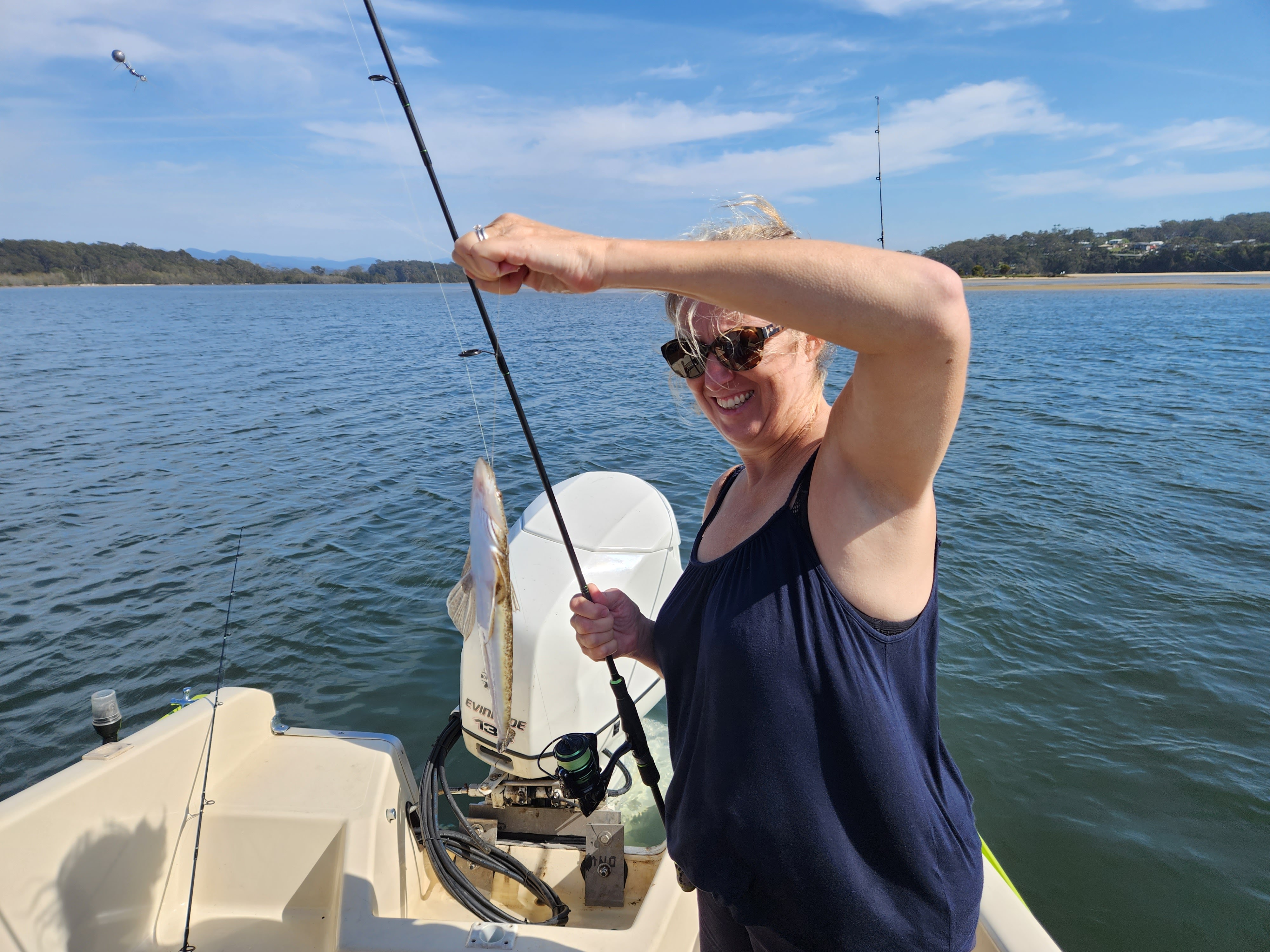 They look like a cross between a crayfish and a prawn and as our fingers discovered (often), they really nip. With our bait secured we headed off up the estuary and to increase our chances we had 4 rods set, which we trailed behind us as we drifted with the tide. No sooner had we put the rods in the water than Stuart caught a flathead, it goes without saying that he now turned this into a competition, in which he was winning. He was over the moon therefore when 10 minutes later he caught a stingray. An unexpected catch and one which we had to put back but he still counted that as an unassailable 2-0 lead. From here on in the fish just kept coming, nothing of any great size but we kept those big enough to eat and obviously threw the rest back. We caught that many fish that even Stuart lost count. Of course it didn’t stop him declaring himself the winner and master fisherman….oh what a difference a week makes.