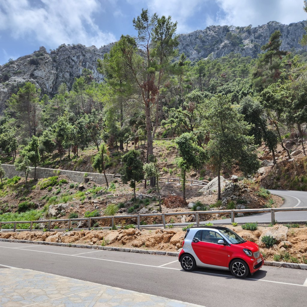 It is at this point we decided to hire a car and do some exploring of the island but without the accompanying exercise. We rang a random local car hire firm who said they only had one car left but it was quite smart. Once again, there was probably some follow up questions normal people would have asked at this point, we also think there may have been a bit of miscommunication. The first thing we noticed on getting the car dropped off was that whilst it was true to say it was a really smart car, it was more importantly a “Smart” car, probably the world’s smallest car…….Stuart wasn’t impressed. However, this car is amazing and perfect for a busy island like Mallorca, we could get anywhere and park anywhere. We also discovered it could go off-road but don’t let the rental company know this.