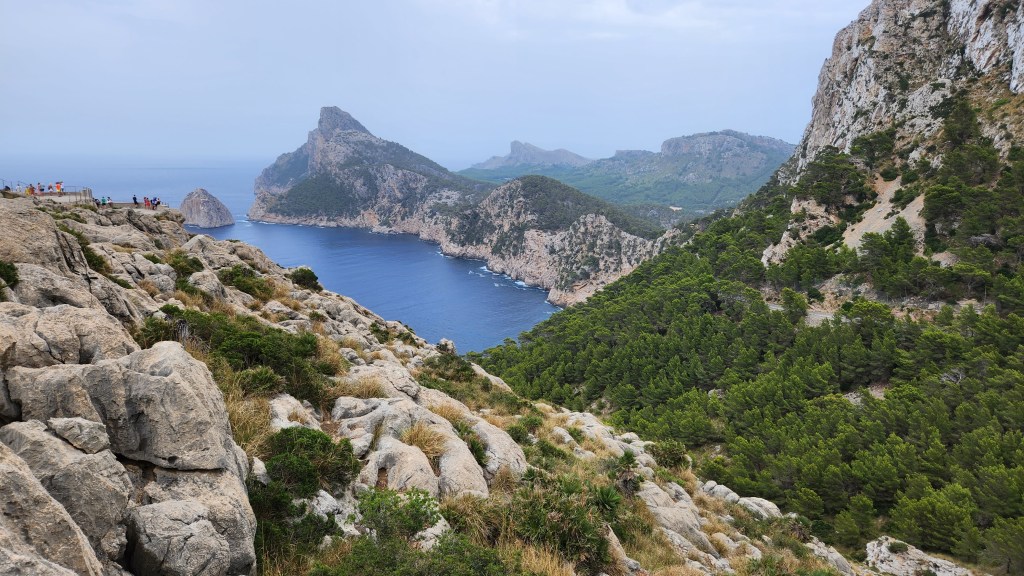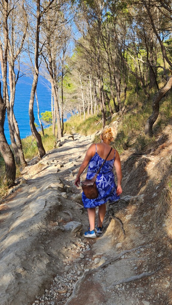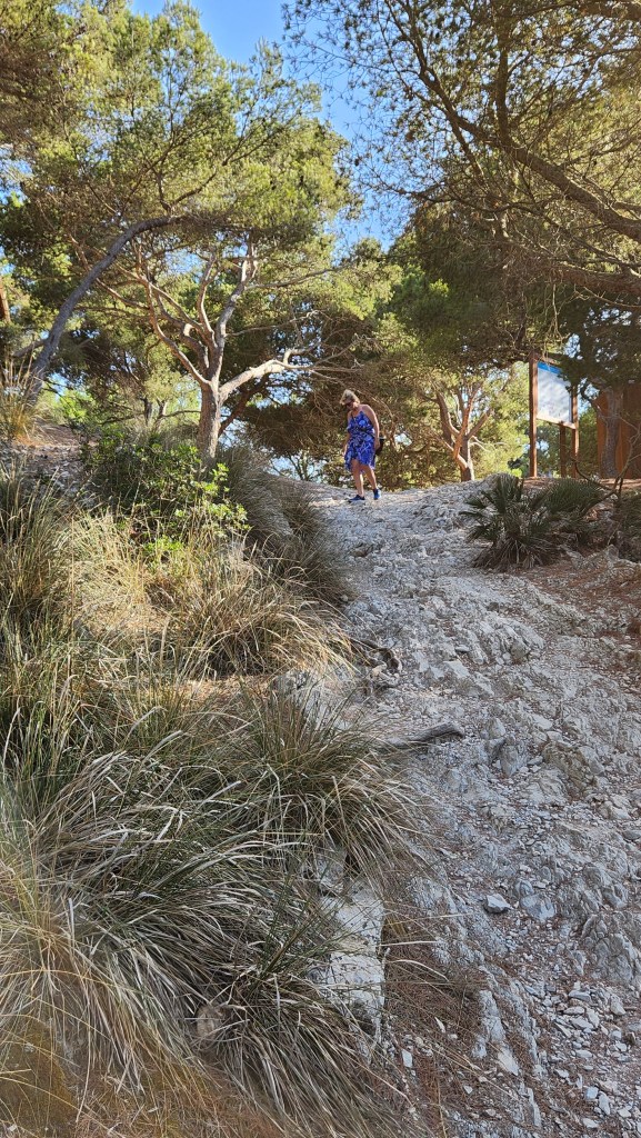 After this disaster, we took ourselves and our red rocket up the Serra de Tramuntana Mountains, a mountain range and UNESCO world heritage site which forms the northern backbone of the island. This didn’t disappoint, as it is a magical place with numerous large birds of prey gliding past sheer cliffs and over cool lakes. At one point we saw a plastic table and chairs in a small layby, with a great view down across the range. We were not sure if it was meant to be a picnic area but in the absence of anyone to ask, we parked our arses, broke out the ham and cheese rolls and lost an hour. Mallorca is really busy this time of year and this where our amazing Smart car came into its own. We could squeeze through car log jams and park in places other couldn’t. However, where possible we tried desperately to avoid the crowds by searching out hard to get to beaches. This is how we discovered the “beach that never was”. Or to put more accurately we failed to discover a beach that was there but which we had targeted specifically because it eluded the common herd. Firstly we travelled 2km down a knackered road with potholes that the New Forest would be proud of. Then we hiked for about 50 minutes gradually burning through all of our water supply. Whilst we could see the beech below, it seemed like we were getting further and further from it. We sent our best scout up ahead who came back stating he’d found the way forward and made a throwaway comment about cliffs and climbing…….hence we joined the common herd and trecked all the way back. From then on we stuck to visiting beeches that weren’t as tricky to get to but found that by going at about 7pm we could spend a couple of hours swimming and still get dinner in. They eat late here and some places didn’t even open until after 8pm. It was a great week but we both felt that with the two previous sailing weeks we’d probably done Mallorca for this trip and we still have another week to go !!!!!