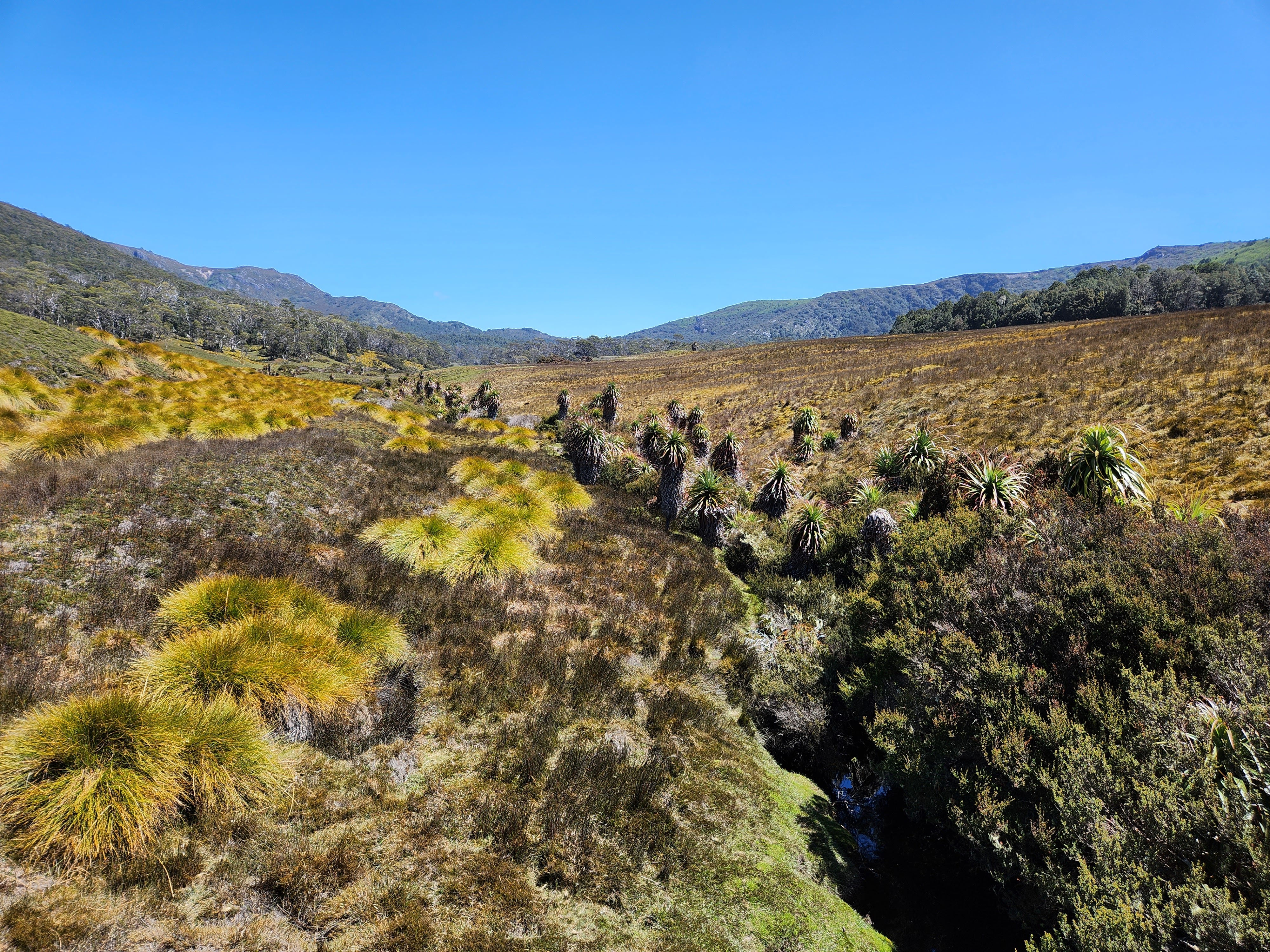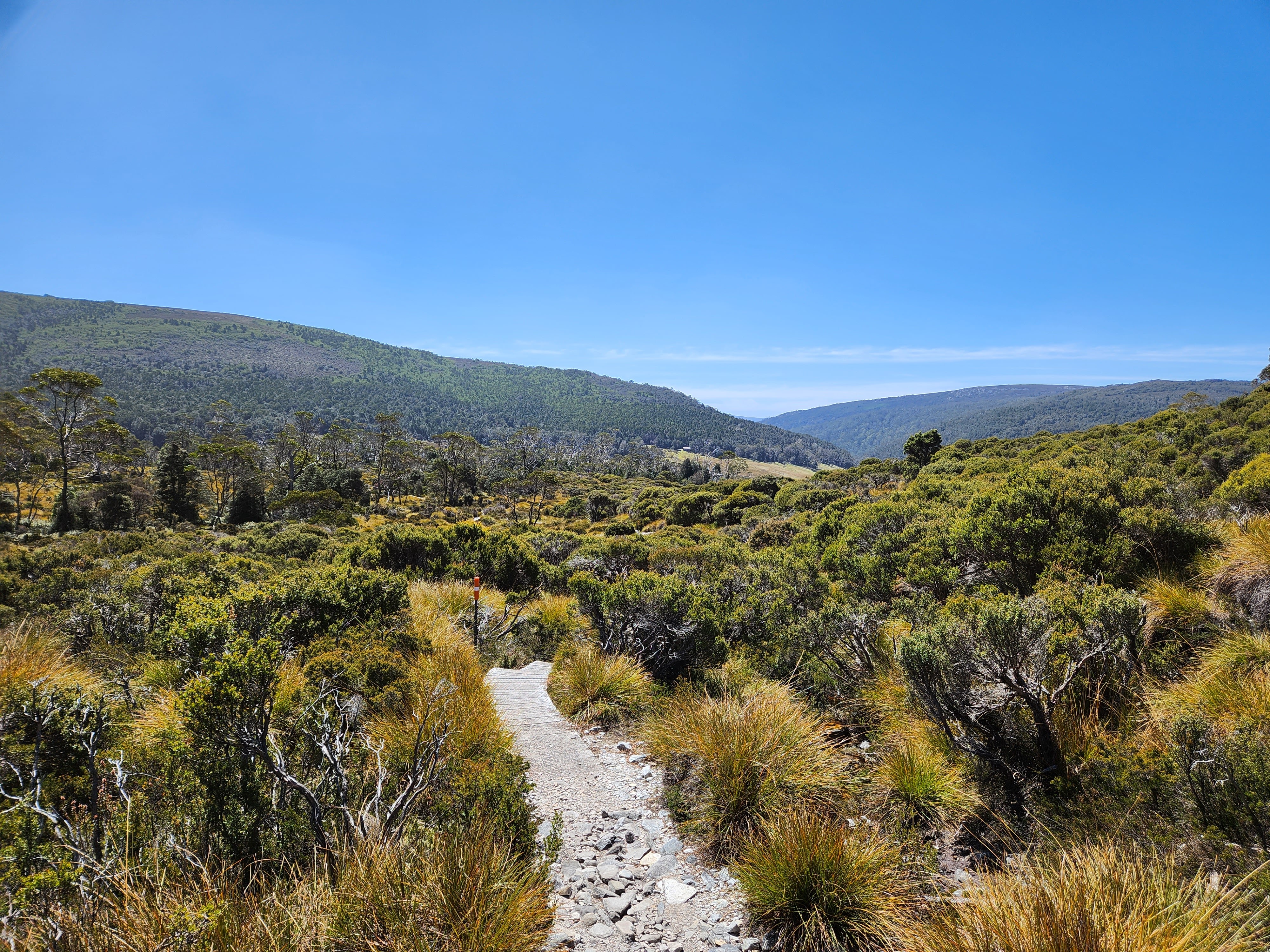 Prior to staying at the Pub, we went for a walk along the Bay of Fires, a region of clear blue water and granite rocks stained with a lichen, which creates an amazing orange colour, giving the whole area a rather spectacular look. From the Bay of Fires, it was off to the mountains we next headed.